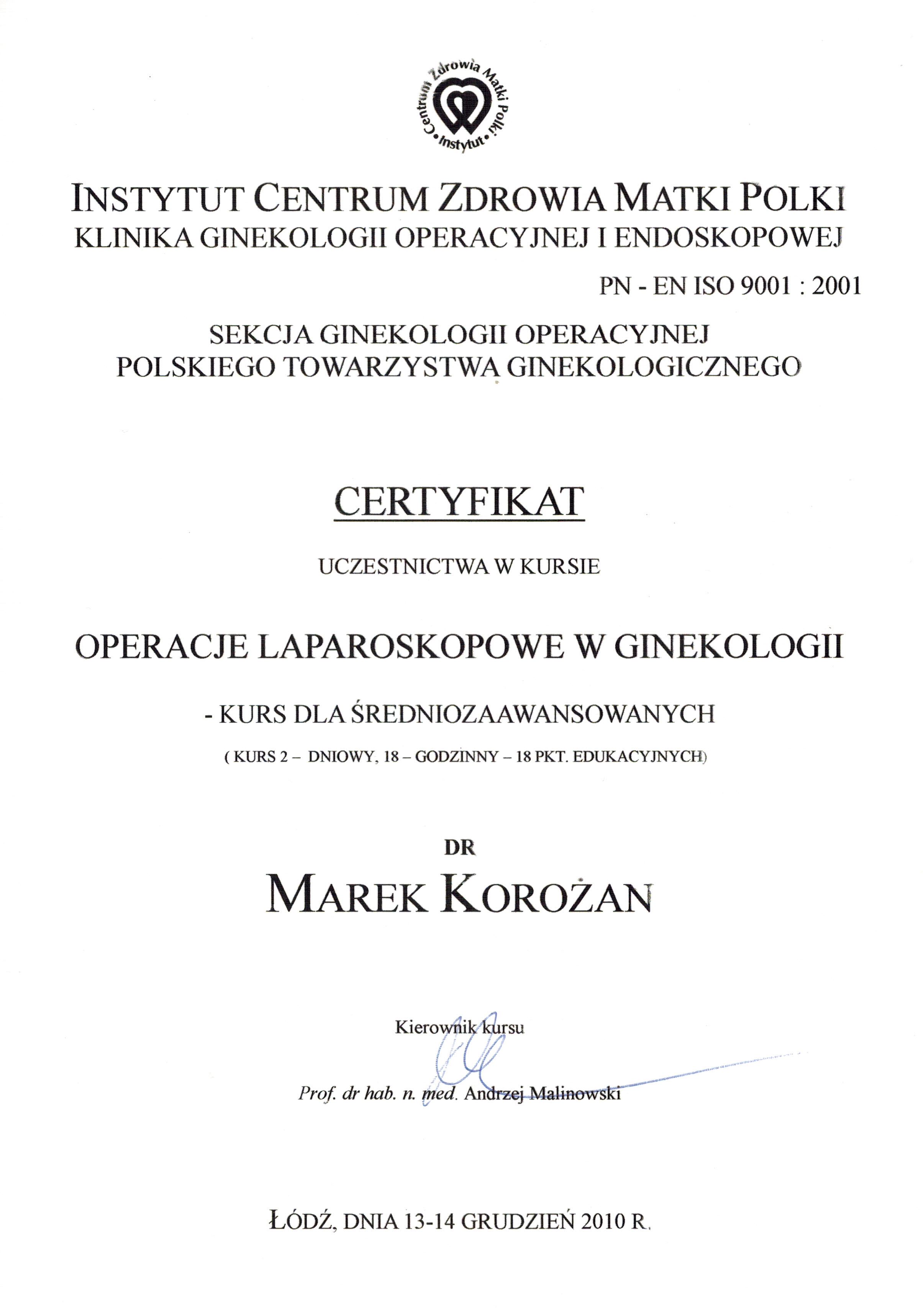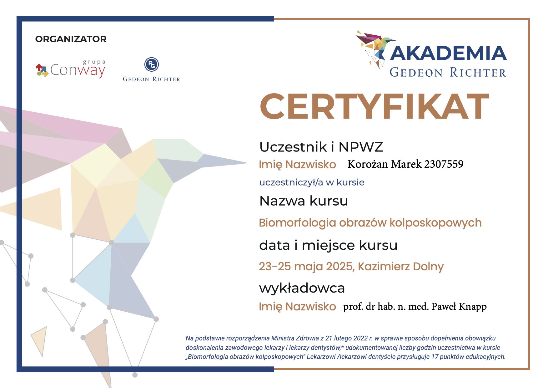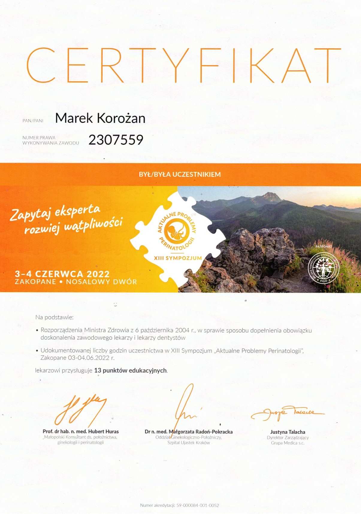 As a token of patients' trust in his healthcare quality and competence, Marek Korożan M.D. has been repeatedly nominated ranked at the highest positions in the “Gynaecologist” category of the Pomerania Hippocrates Plebiscite. In 2017 and 2019, he subsequently received the 2nd place, and in 2018 he was ranked at the 1st position.
